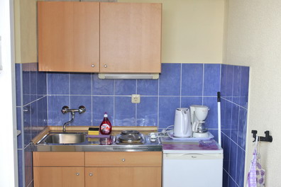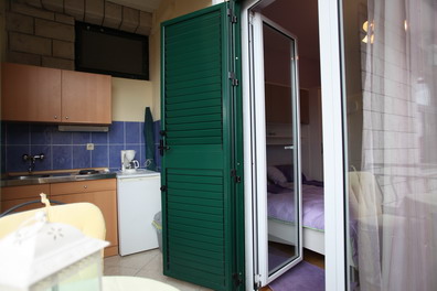 Apartman A4 (3) ima trokrevetnu sobu, kupaonicu, WC, Wi-Fi internet i SAT-TV, balkon i kuhinju. Nema pogled na more. Apartman je klimatiziran.
